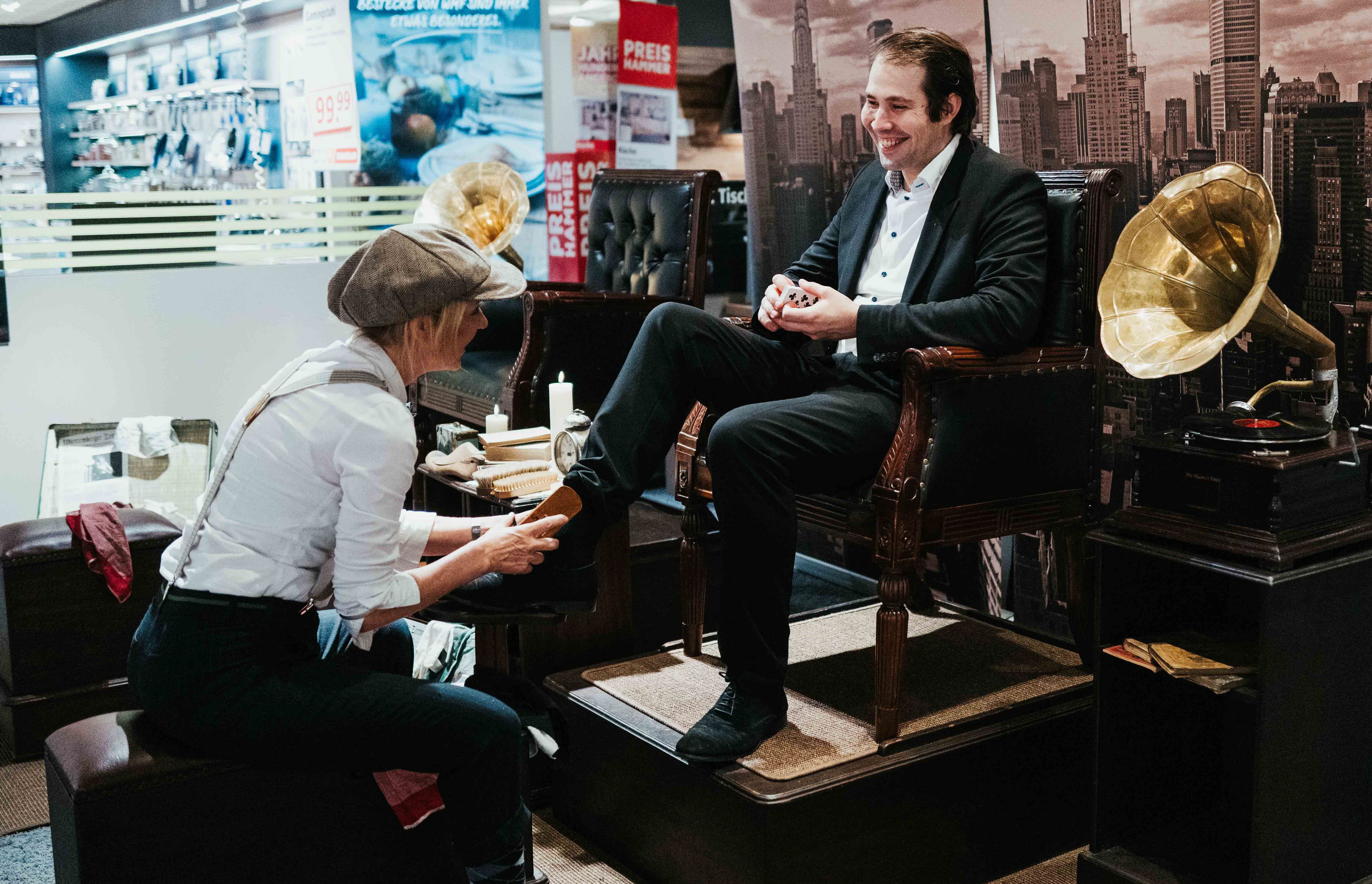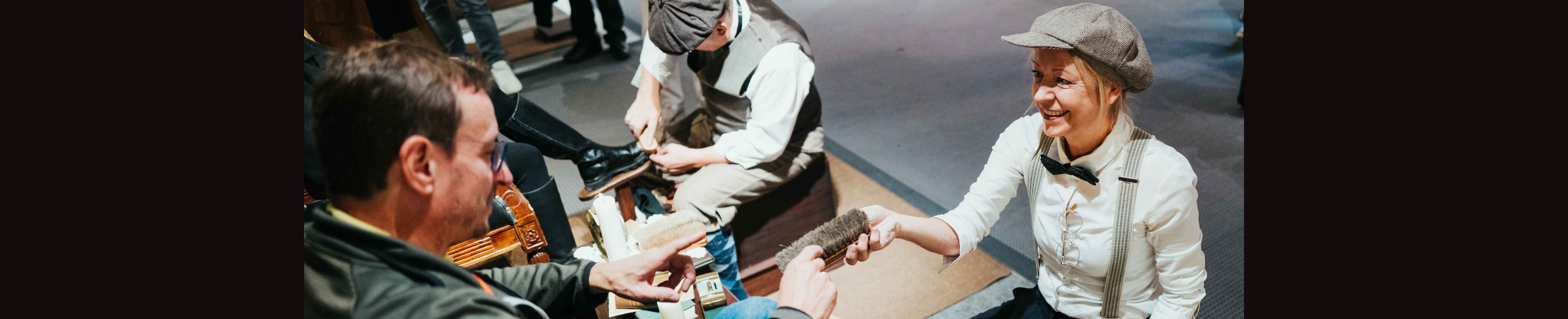 Eleganz trifft Unterhaltung. Die stilvollen Schuhputzer als Publikumsmagnet sorgen für Gesprächsstoff, lockere Stimmung und sympathische Kontakte.